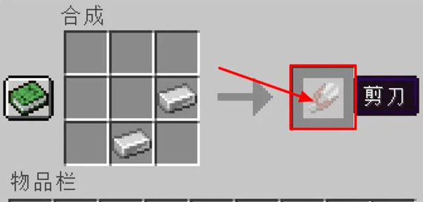 剪刀 2 块铁锭(左右摆放) 收集蜂箱里的 “蜜脾”(做蜂箱、蜡烛的关键材料)