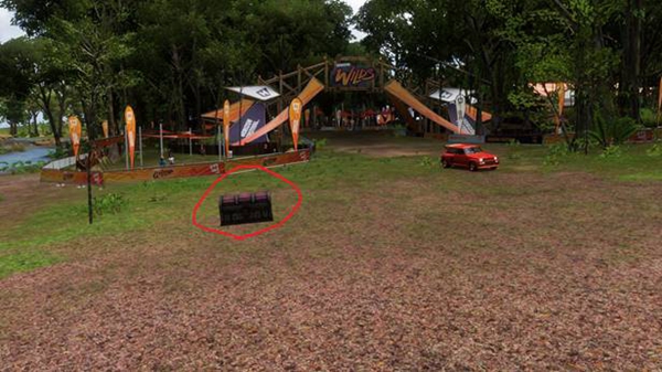 宝箱被设置在嘉年华的一个出口旁边,周边无障碍物,非常好找