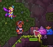 4)The Clumsy Slime笨拙史莱姆:在半空中,不一定是太空(我丛林和腐化地都遇到过),都有概率遇到它,绑一个气球飘着,扎破它的气球即可。但是建议太空等它,因为感觉概率大点。