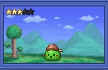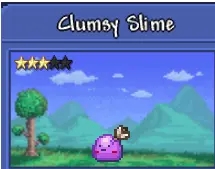 2)The Squire Slime侍卫史莱姆:对着地表的任意史莱姆,丢一个铜制头盔。它就变身成为铜盔哥。