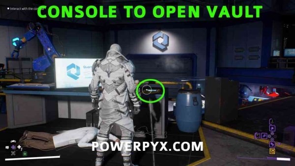 案件FR01-金库开启方法 击败房间内的敌人后,楼上有个控制台开关就在金库门的正前方。按【十字键-下】扫描并高亮,与之互动解开开启金库。
