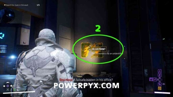 线索2:在金库内的左侧,扫描墙上被撕毁的蓝图。