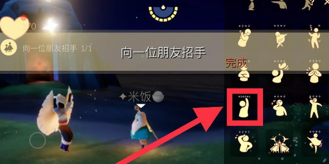 任务一:向一位朋友招手 完成方法:面对好友做一个招手的动作就好了