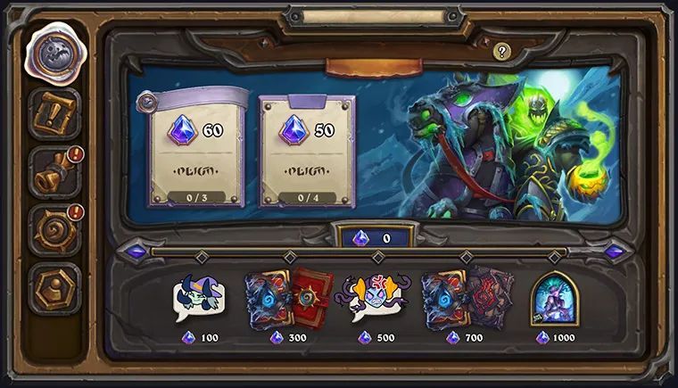 使用“冰封王座的骑士”卡牌,完成特别活动任务和每日任务,就能获得活动经验值。正常游戏也可获得活动经验值,但活动任务是完成活动奖励路线的最快方式。在活动期间完成全部活动奖励路线,就能获得两个酒馆战棋表情、一包标准卡牌包、一包“纳斯利亚堡的悬案”卡牌包、两包“巫妖王的进军”卡牌包,以及传统对战英雄皮肤女妖泰兰德!