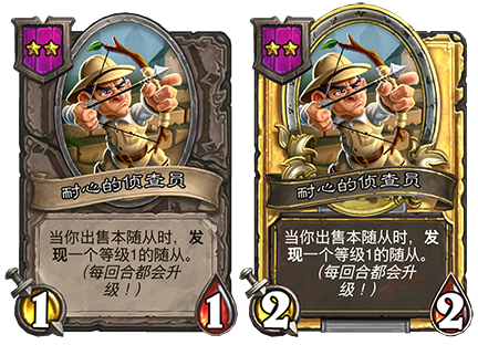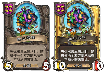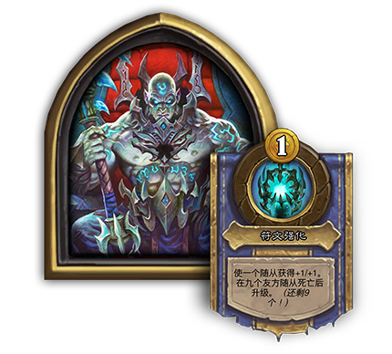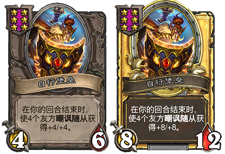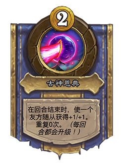 新:[消耗2枚铸币]在回合结束时,使一个友方随从获得+1/+1。重复0次。(每回合都会升级!)