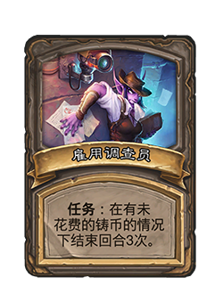 雇用调查员:在有未花费的铸币的情况下结束回合3次。