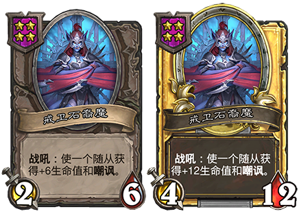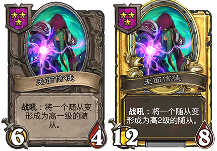 堕罪堡勋章:在你使用一张随从牌后,使2个相同等级的其他友方随从获得+2/+2。