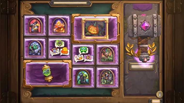 首次战棋宝锤活动为万圣节系列,其中包含10件物品(入场资格售价600奥术宝珠),包括两件传说物品:一款传说对战面板,一款传说打击特效,一款稀有调酒师,5款史诗皮肤,以及两套包含三个稀有表情的套装!