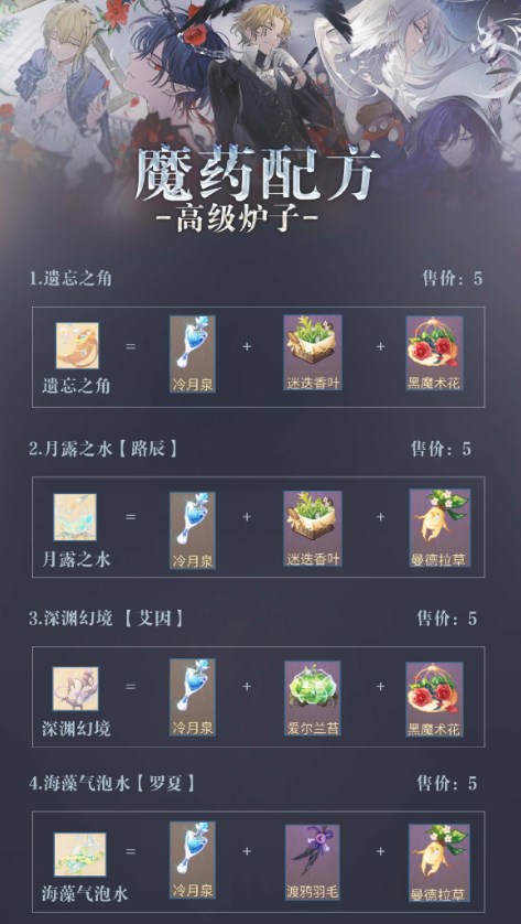 以上就是时空中的绘旅人暗夜终章高级魔药配方分享的全部内容了,希望玩家可以顺利的知道怎么搭配,更多精彩内容请关注手游巴士。