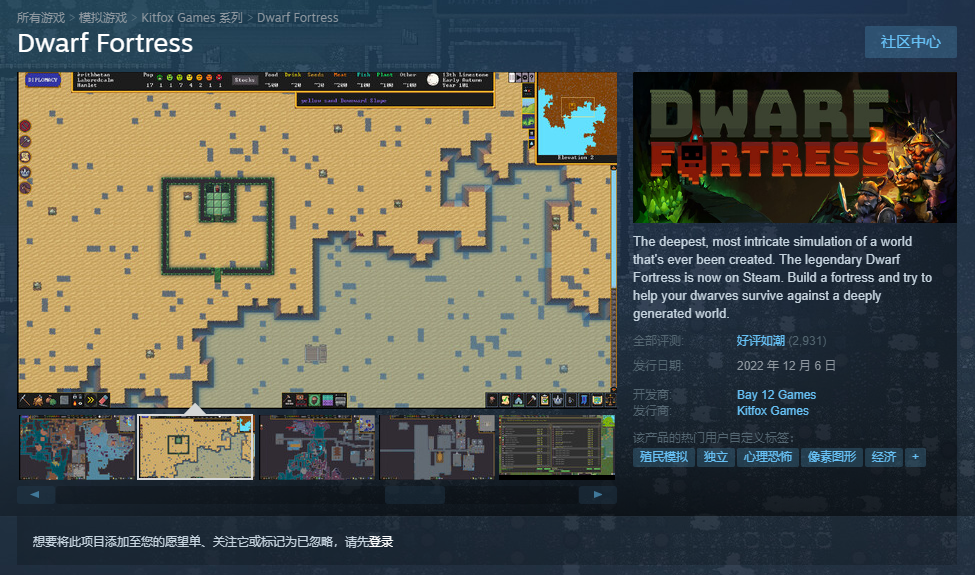 传说中的矮人要塞现在在Steam上!建造一座堡垒,努力帮助你的矮人生存,尽管面临饥饿、恶龙和疯狂的威胁。