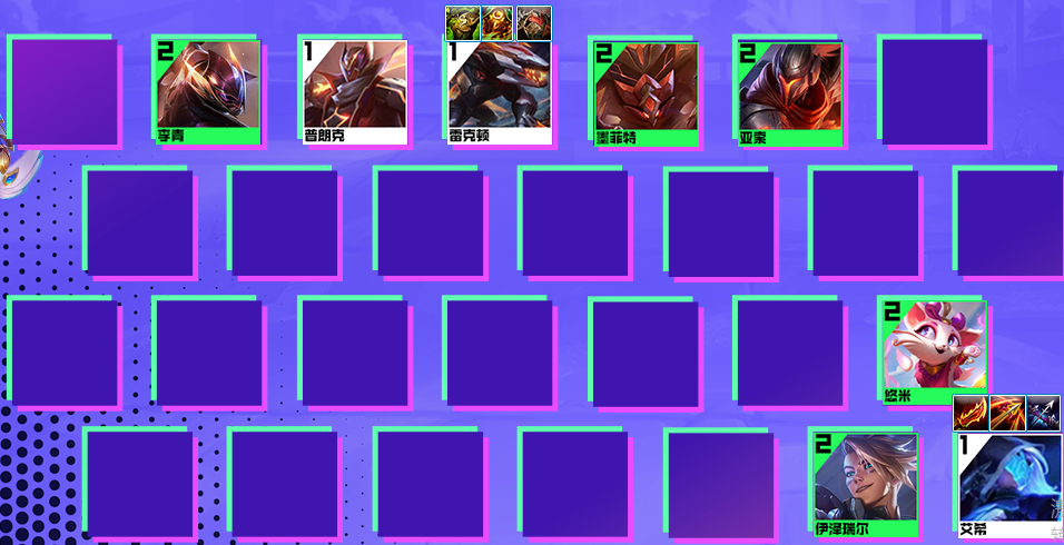 阵容组成:艾希、普朗克、雷克顿、伊泽瑞尔、悠米、亚索、李青、墨菲特