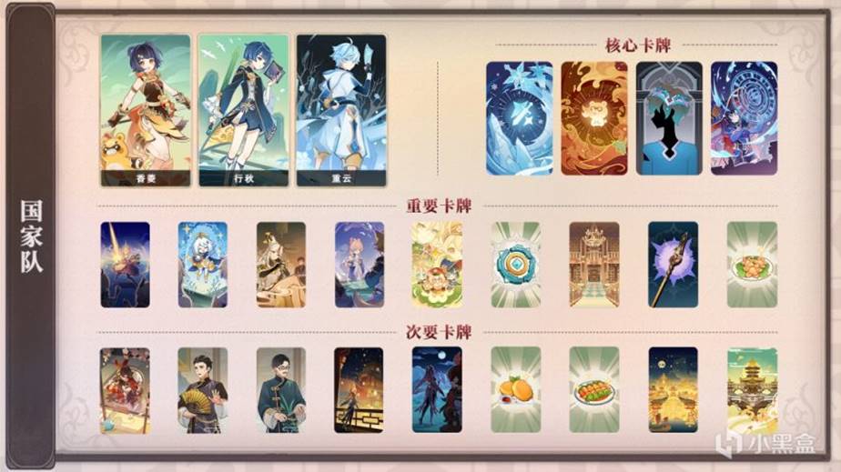 (1)需要携带大量充能卡,来释放出香菱和行秋的大招,等叠满buff后,靠普攻触发打出巨额的爆发。