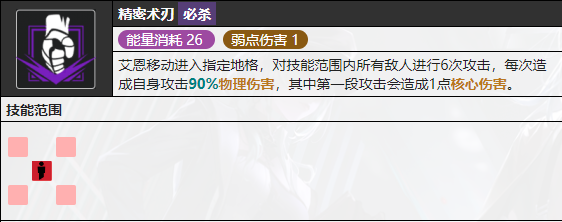 禁闭者档案 禁闭者MBCC-S-062 艾恩 ■诡秘特化 Umbra Tendency 「清除狂厄的理想,很快就能实现了。」 * 条目I:辛迪加“彼岸诊所”创始人,对外提供庇护和医疗帮助的中立势力。 * 条目II:对象滥用异能擅自包庇、聚集狂厄患者,隐瞒禁闭者身份蔑视MBCC执法权,给辛迪加带来极高污染风险。 * 条目III[已解锁]:异能名称【神经电极】。能对神经电流进行精密控制,有效帮助机械手臂与原生神经融合,实现超乎想象的精密战斗效果。 ■查阅权限 [已解锁] ※荒舟绮梦追踪限时概率提升 「放着那些辛迪加的暴徒不管,却把治病救人的医师关起来?哼,好一个善恶不分的MBCC。」 「人们害怕的不是狂厄本身,而是狂厄带来的暴力与死亡,这也正是我必须清除罪孽的原因。」 技能介绍