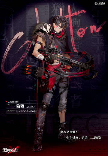 禁闭者档案 禁闭者MBCC-S-076 狼獾 ■精准特化 Reticle Tendency 「兔子,给你的。你帮我进步,我送你肉。」 *条目I:游荡在锈河地区的禁闭者。 *条目II:长期协助黑帮狩猎锈河地区的死役,并向辛迪加走私狩猎的死役尸体。 *条目III[已解锁]:异能名称【狩猎本能】。所持手弩及其箭矢为辛迪加黑帮普通制式,在异能加持下,因身体机能得到强化,弩箭穿透性和破坏力显著提升。 技能介绍