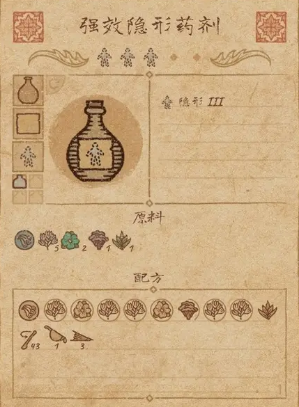以上就是药剂工艺强效隐形药剂配方一览,感兴趣的玩家可以参考本篇攻略,希望能对大家有帮助,想了解更多资讯攻略和教程赶快收藏手游巴士,多特小编为您呈现精彩内容。