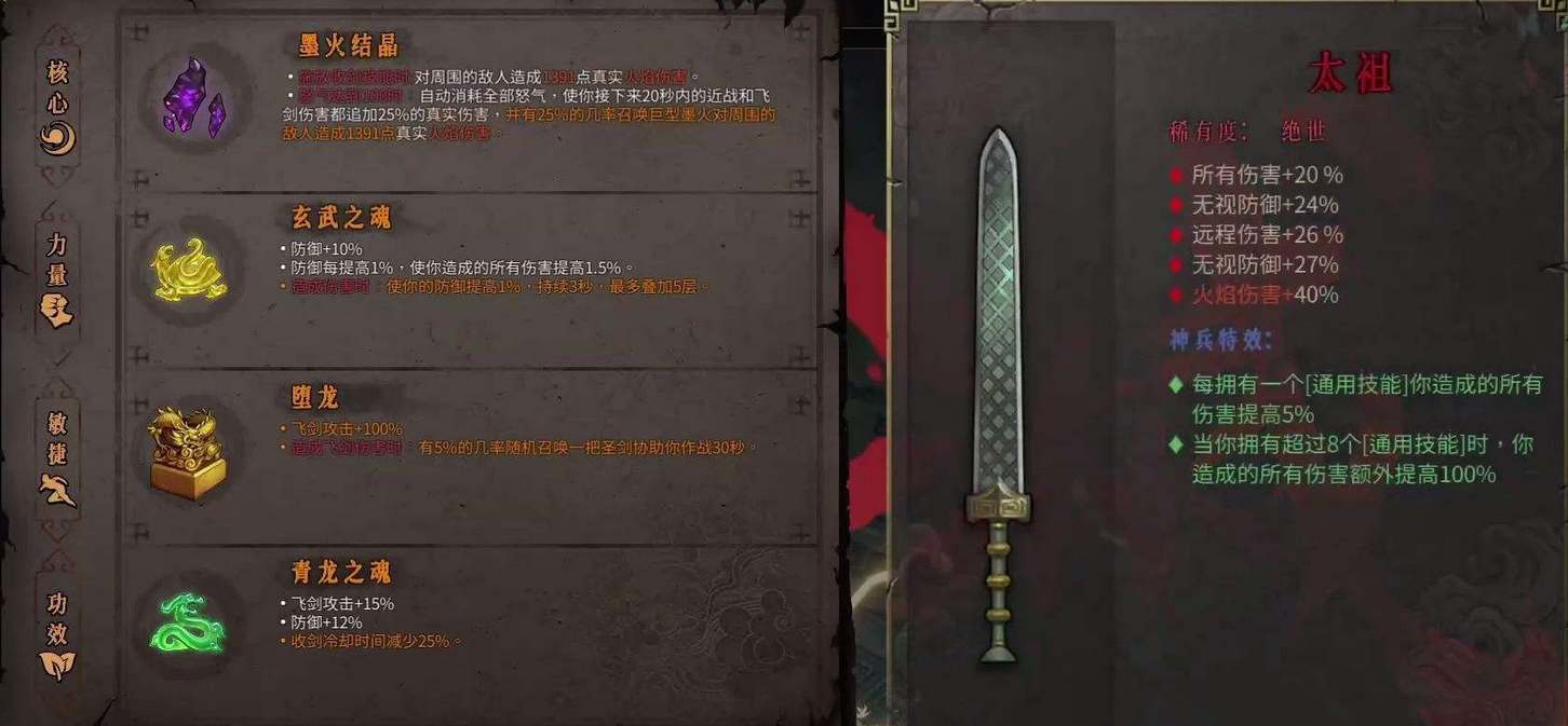 1号位 推荐墨炎结晶 释放技能会对周围敌人造成火焰真实伤害,怒气值满会直接释放,给飞剑附加伤害提升输出 2号位 推荐机关外壳 对敌人造成伤害有几率获得生命值20%的护盾,持续s5s,自动消耗怒气可以重置收剑冷却时间,而且护盾消失的时候可以回复一定生命值 3号位 推荐堕龙 提升基础伤害并且有概率召唤圣剑协助战斗 4号位 推荐憎恨之心 在功效位置的时候可以增加攻击伤100%,同时提升自身防御