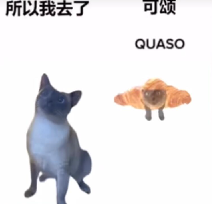梗由来: 形象上应该是借鉴了之前非常火的“苹果猫”,再加上“可颂”的发音非常像陕西方言“瓜怂”(傻),所以它们很可能都是陕西猫。