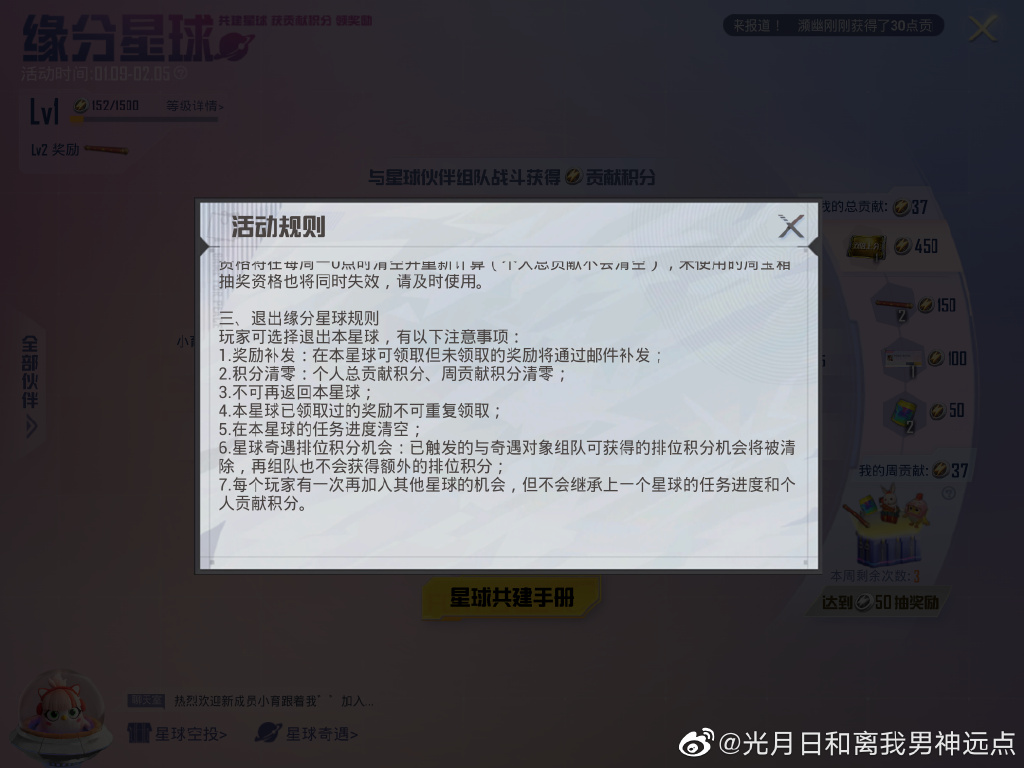 7.每个玩家有一次再加入其他星球的机会,但不会继承上一个星球的任务进度和个人贡献积分。