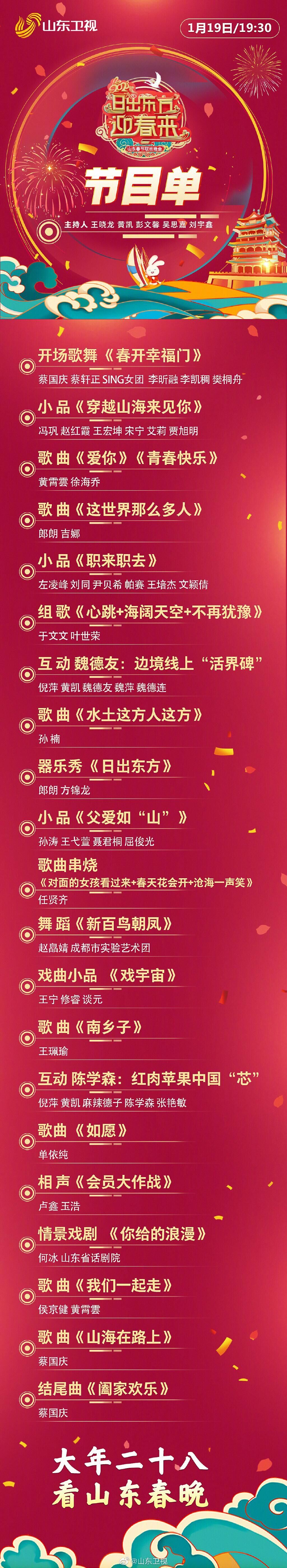 以上就是2023山东卫视春节联欢晚会节目表分享了,看到这里的小伙伴千万不要错过哦晚会播出时间哦。想要获得更多游戏相关内容请继续关注手游巴士哦。