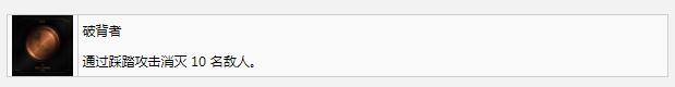 达成条件:通过踩踏攻击消灭 10 名敌人。 1、这个成绩需要你去解决10个一次直接踩死的小怪才行 2、可以在墙上的触手怪旁边刷,但是不要直接打那个触手怪,打它制造的小怪 3、按R2踩死10个小怪就能跳杯