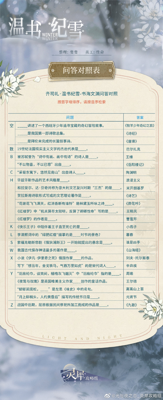 以上就是光与夜之恋温书纪雪答案分享了,看到这里的玩家快进入游戏中去参与活动吧。想要获得更多游戏相关内容请继续关注手游巴士哦。