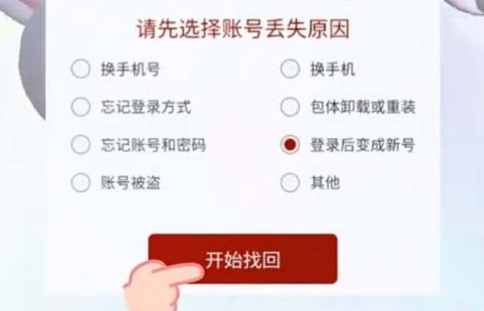 1、首先玩家需要下载一个官服的游戏安装包,并且安装运行游戏; 2、在登录界面找到下图所示的【账号找回】按钮 ,点击后会打开一个菜单,选择【登录后变成新号】