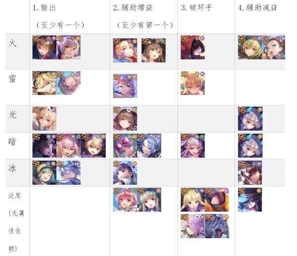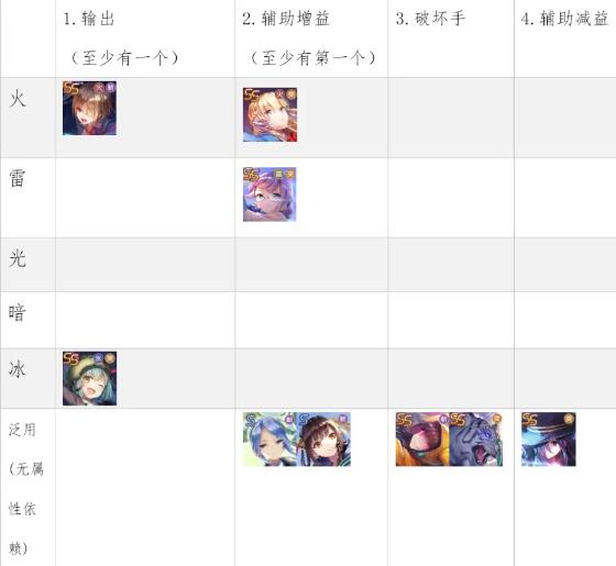 输出体系按属性分目前火雷光暗冰都比较齐全了