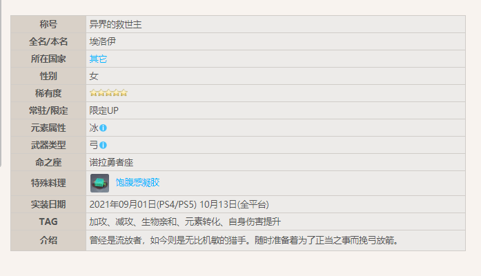 官方介绍 壹·人物 「异界的救世主」·埃洛伊 只有最险峻的山野,才能磨炼出最优秀的猎手。 来自诺拉的机敏猎手。随时能为正当之事挽弓放箭。 流放者——这是埃洛伊最先拥有的身份。 自出生起,埃洛伊就一直受到部落中不知缘由的排斥和畏避,被迫居住在远离部落的险峻山野中,由一名猎手罗斯特抚养成人。 但她为什么会被部落排斥?她的身世究竟是什么? 这些疑问始终困扰着埃洛伊。为了找到答案,埃洛伊曾刻苦训练,期望在取得「试炼仪式」的胜利后,再从部落族长口中问出些讯息。但当试炼的时刻来临,迎接她的却是一场突如其来的灾难。厄运从她身旁夺走了所爱之人。 顽强的埃洛伊并未退缩。相反,她坚定地踏上了追寻之旅。 她走遍了覆满尘雪的荒野,追猎着如山般庞大的机械巨兽,与神秘的部落艰难交涉,探寻诸多远古遗迹…在这趟旅途中,她逐渐得以窥见自身命运,心中的诸多疑问终于获得解答。 最终,埃洛伊和她的盟友见到了真正的敌人——「哈迪斯」,击败了那份来自远古的恶意,挽救了世界。 她曾想过,也许那会是旅途的终点。但命运之路永远比人们想的更长,她寻着新的方向踏上了提瓦特大陆。 在这全新的世界中,猎手埃洛伊已经蓄势待发,准备好迎接各种前所未见的挑战了。 「埃洛伊,加入狩猎。」