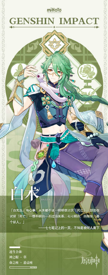 「不卜庐」药师阿桂曾提过,白术的身体状况奇差无比,坐诊后常回住处调息静养。即便如此,他也从不在人前卸下微笑。