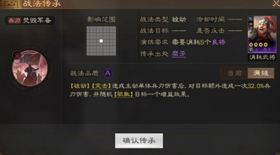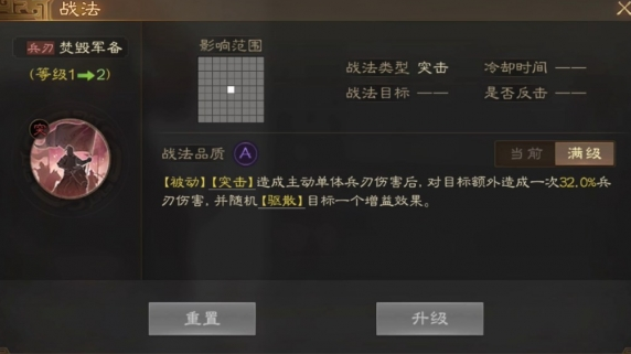 [被动]_ [突击]造成主动单体兵刃伤害后,对目标额外造成一-次32.0%兵刃伤害,并随机[驱散]目标一个增蓝效果。