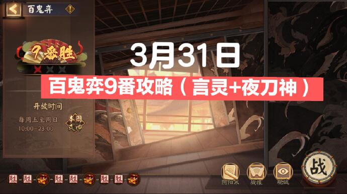 以上就是阴阳师百鬼弈3.31攻略分享了,看到这里的玩家快进入游戏中去完成挑战吧。想要获得更多游戏相关内容请继续关注多特游戏哦。