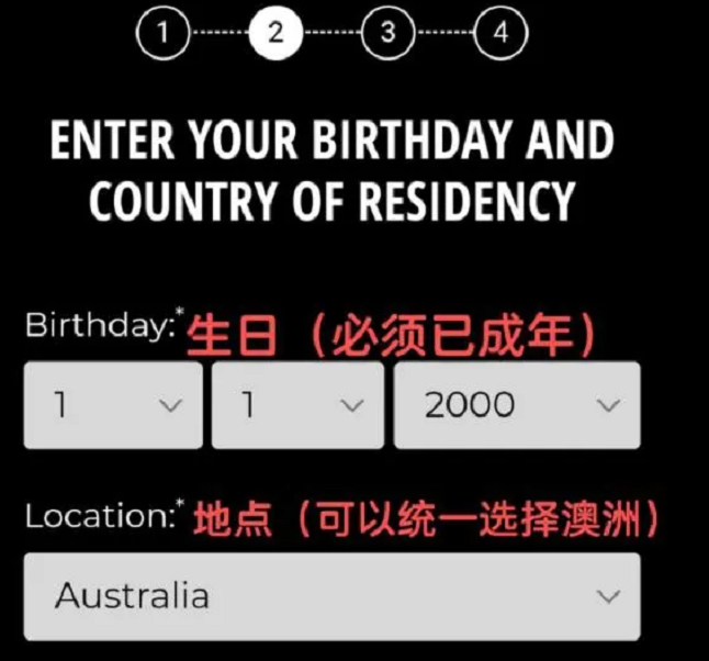 6、生日必须为成年满18岁,地点选择澳大利亚。