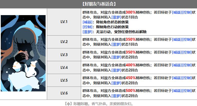 群体攻击,对敌方全体造成300%精神创伤;若目标处于[减益][控制]状态中,则使其陷入[噩梦]状态1回合