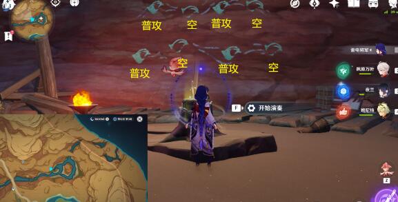 第一处打鼓地 1.我们先来到第一处点位,根据墙上的乐谱,来打鼓。