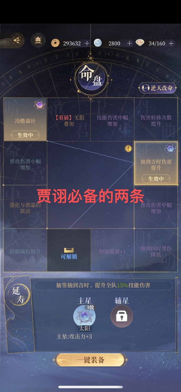 50%的技能伤害加成,让他成为一波秒的核心,不只是郭嘉,和任何技能人物都很搭,我又洗了一个抽到吉时15%技能加成,一共就是65% 如果让他做队长非常可怕,可以达到将近100%的技能伤害加成,万金油辅助! 所以别说你的华佗输出不够,是你没有毒计拐。