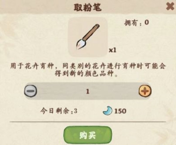 取粉笔,山遇商店或杂货铺可获得,是育种新花色品种时所需的道具,使用取粉笔可以对同类的花卉进行育种尝试,可能得出新的花色品种。
