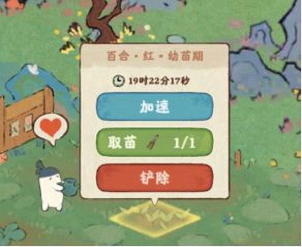 获取幼苗后在花圃内种植,会经过幼苗期、生长期、含苞期、盛放期,点击照料键可以照料花朵,缩短幼苗的生长时长,在花卉生长完成后,可以点击采摘获得花卉。花艺等级越高,能够解锁的幼苗种类就越多,也可以领取相应的收集奖励
