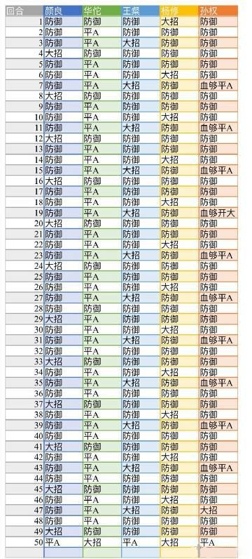 4.最后一轮攻击顺序:杨修、华佗(这俩攻击最高)、王粲颜良、孙权(因为此时没有剑了)