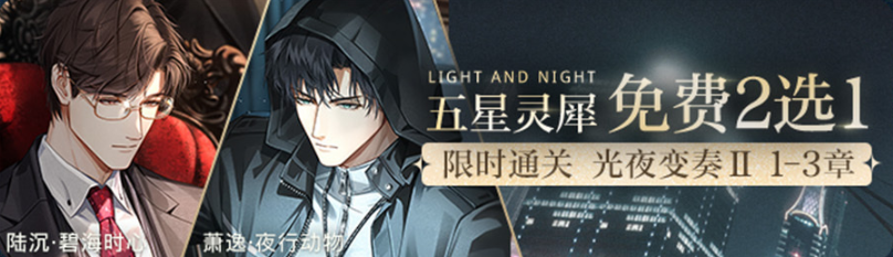 活动内容:活动期间通关光夜变奏II·新生乐章第一~三章后,即可领取[岁月缝隙.限时自选]五星灵犀自选礼盒,在[5星]灵犀萧逸·夜行动物、[5星]灵犀陆沉·碧海时心中[自选一张]。