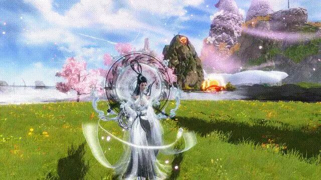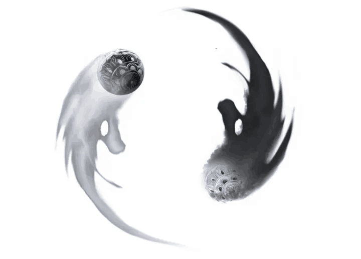 ②坐忘:人物坐在阴阳玉上,两个情绪所召唤的阴阳玉颜色不同,分别对应为八卦的阳(白色)与阴(黑色),当两者相遇后则会合并为完整的双色阴阳玉;