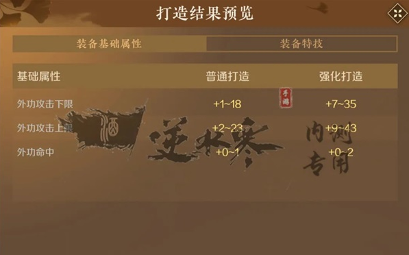 普通打造的结果将从装备基础属性和特技中随机出现。