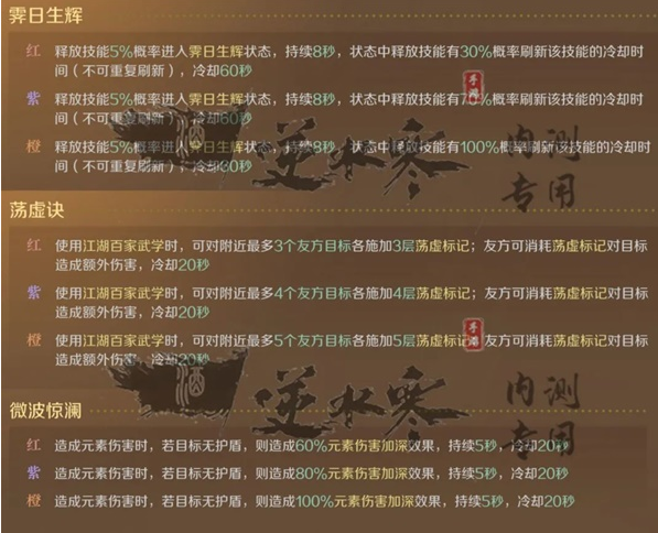 特技的品质从最低的蓝色到最高的紫色随机出现。