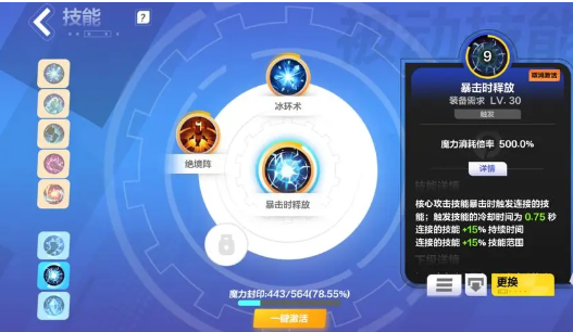 4、到了这里就是比较进阶的“技能冷却了”,比如使用的是多段攻击一秒钟之内可以触发10次暴击,那么正常情况下应该会触发10次B技能。但是由于冷却时间的限制,可能就只能触发两次。玩家需要做的就是使用装备、天赋、词条等功能来减少这个冷却。