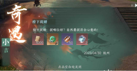 奇遇名称:榜下捉婿 触发位置:杭州【1296,922】 触发方式:在她面前使用纸条即可。