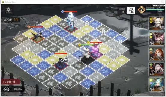 H-1的战场特性为怪物移动时生成碎裂格子,碎裂格子会大幅度降低我方的输出,也是本关的主要难点之一。敌人均为常见的对手,第一波为俩体积四,俩体积一,不多述,第二波为四体积一,如下图,也是本关需要额外小心的地方。 两只远程射击小怪“蔓靶”在此关具有非常恐怖的攻击力,又因为其攻击范围很广,不带回复的情况下很难坚持几回合。左上角的消悸伤害同样很高。相比于第一波次的敌人,第二波次更为凶残。所以此关的通关策略为快速解决第一关的任意三敌人后,不击杀最后一个,等待完CD后进入二波次。光灵携带推荐一名可以净化/重置格子的角色,除去破碎地板带来的负面影响,例如纳努塞尔,乌列尔等。