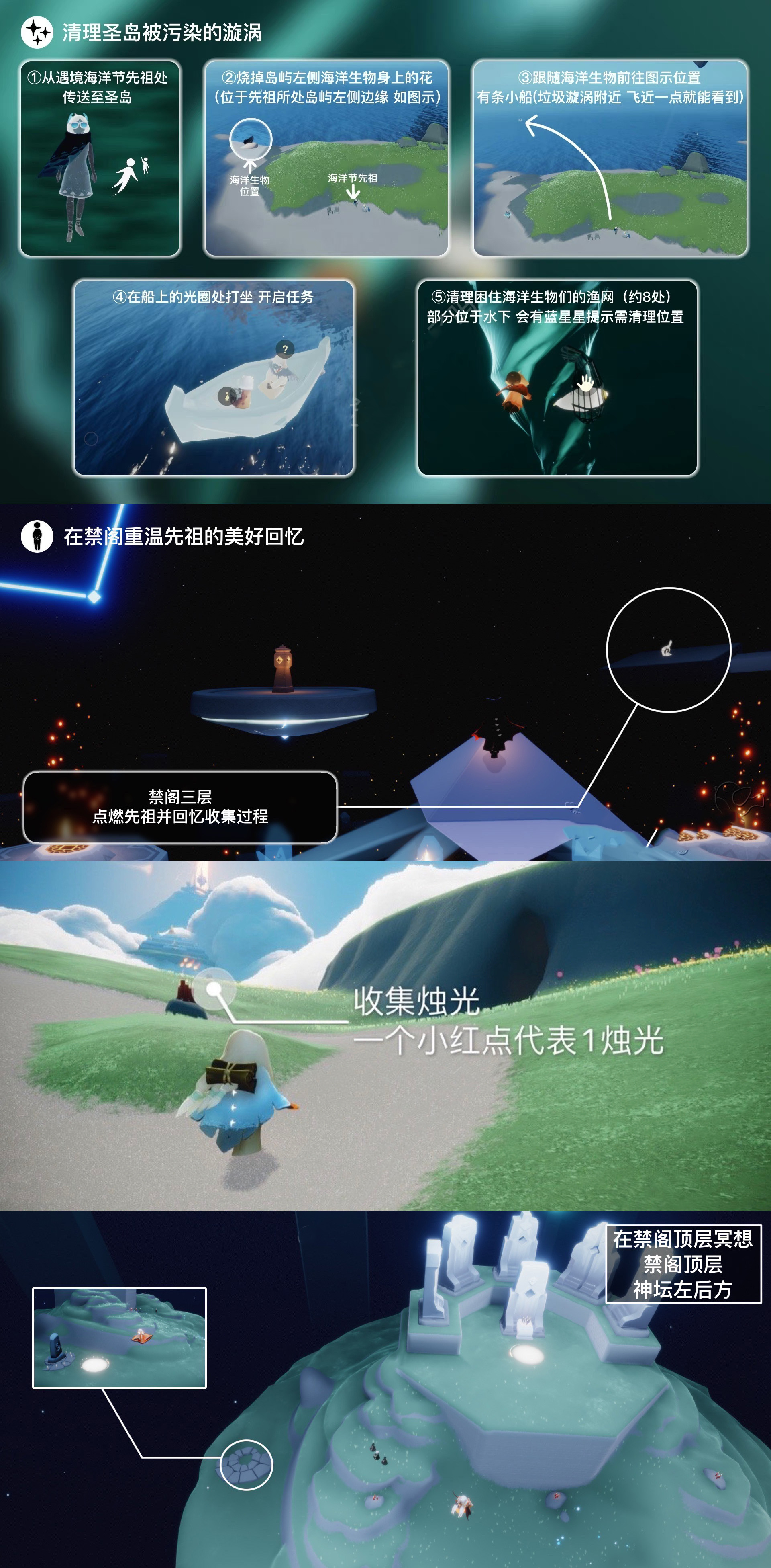 5月27日每日任务 「清理圣岛被污染的漩涡」 流程比较复杂直接看图 「在禁阁重温先祖的美好回忆」 禁阁三层 「收集30点烛光」 「在禁阁神坛冥想」 在禁阁顶层左边的石碑前光圈处打坐并冥想