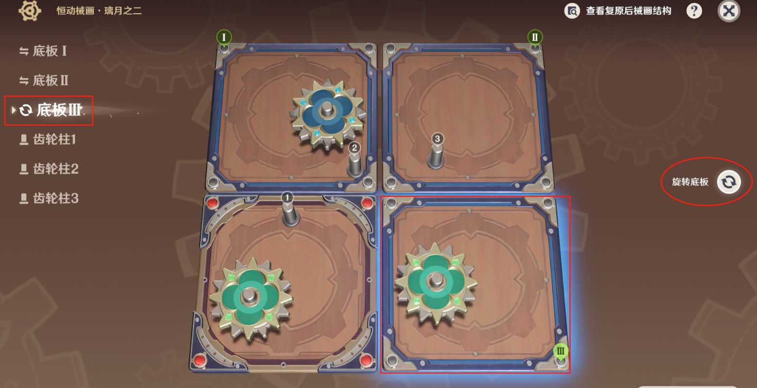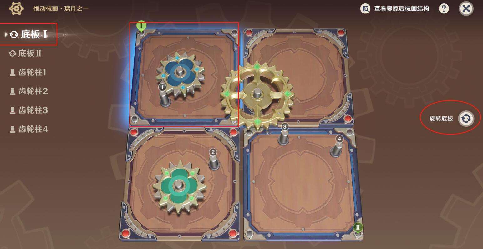 恒动械画·璃月之一复原步骤 第一步:点击底板Ⅰ,旋转底板三次