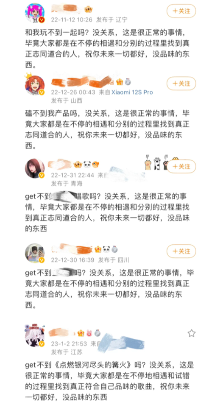 梗由来: "没品位的东西"是指一种网络流行语,通常用来形容一些庸俗、低俗、缺乏艺术价值或文化内涵的物品或现象。这个梗通常在互联网上被广泛使用,尤其是在社交媒体和在线论坛中,用以讽刺某些审美观念或流行趋势的缺乏。 这个梗最早出自哪里已经无从考证,但它在2019年左右开始流行起来,并被广泛使用。它通常与"low-quality"、"trashy"、"blatant advertising"等词语相关,表达对某些物品或现象的轻蔑、嘲笑或厌恶。 梗介绍: 不喜欢妮娜?没关系,玩游戏的品味是主观的,每个人都有每个人的审美,在这漫漫人生路上,总会遇到与你志同道合的人和爱好不同的人,我们要尊重差异性。希望你未来一切都好。永别了,没品位的东西。 不喜欢k记吮指原味鸡和土豆泥?没关系,每个人都有每个人的口味。在这漫漫人生路上,总会遇到与你志同道合的人和爱好不同的人,我们要尊重差异性。希望你未来一切都好,没品位的东西。