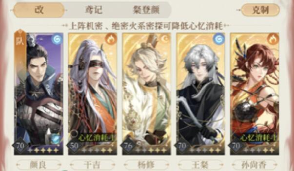 一、阵容练度 命盘要求: 杨修:普攻概率回能、初始+2、技能大幅 王粲:技能-1、技能护盾、回合结束恢复血 颜良:初始+1、最大生命大幅、最大生命中幅 干吉:死亡更快复活、攻击大幅 孙尚香:普攻群攻、暴击提升