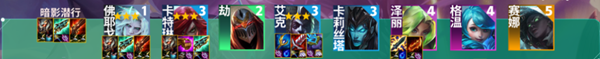 一、阵容推荐 成员: 佛耶戈、卡特、劫、艾克、滑板鞋、泽丽、格温、赛娜